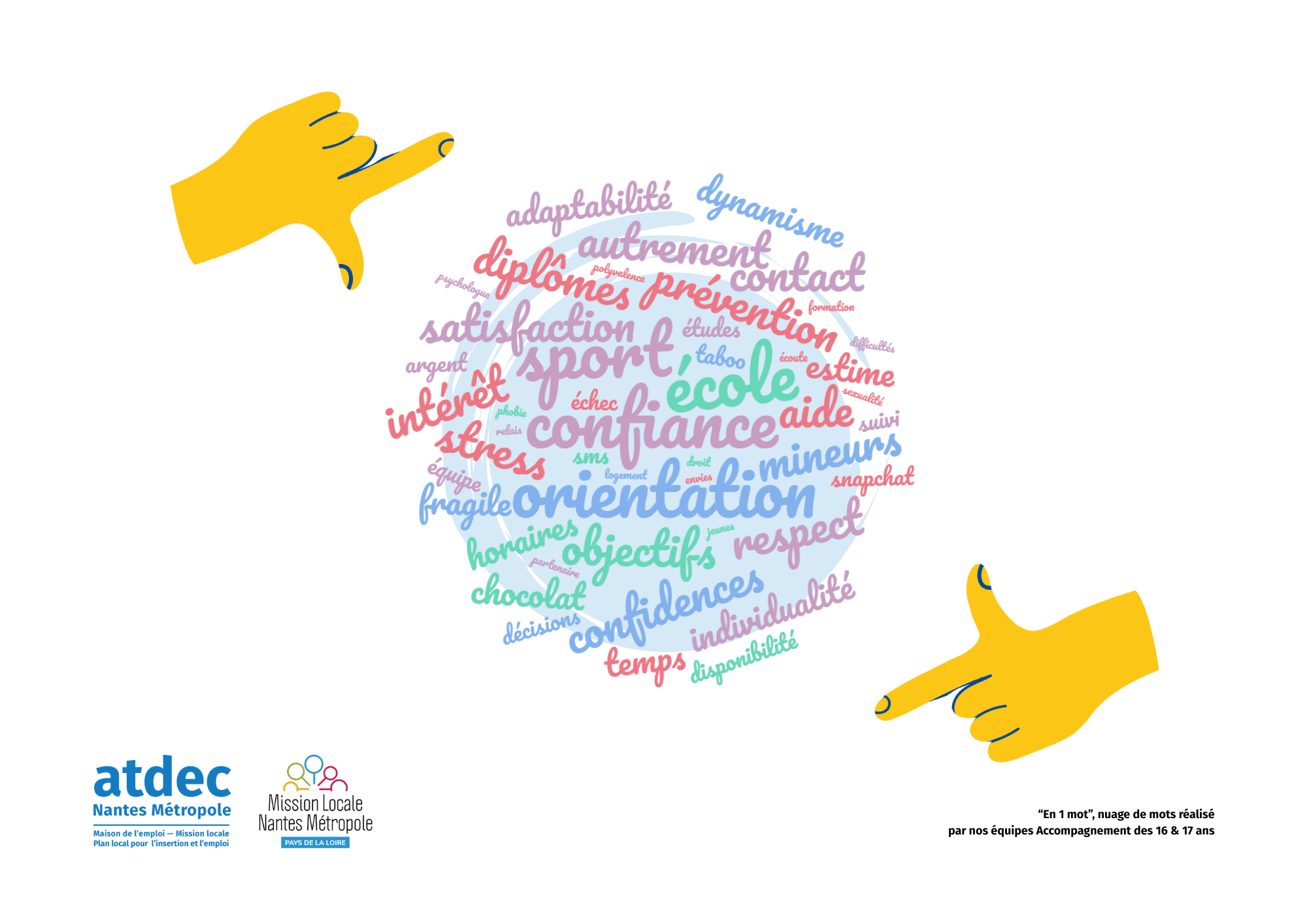 Pour éviter de se retrouver sans projet ni activité ! Le but est d’éviter le décrochage en agissant avant la rupture scolaire ou si le décrochage est déjà effectif, alors on propose des solutions alternatives pour sécuriser le parcours d’apprentissage. Les principales caractéristiques de cet accompagnement portent sur un travail de la confiance (en soi, envers les autres), la remobilisation au quotidien, le projet professionnel, la formation et les premiers emplois. Les rendez-vous peuvent se réaliser sur le lieu souhaité par le jeune : dans les locaux de l’Atdec Nantes Métropole, dans un parc, dans les locaux d’un partenaire institutionnel ou associatif, etc.
