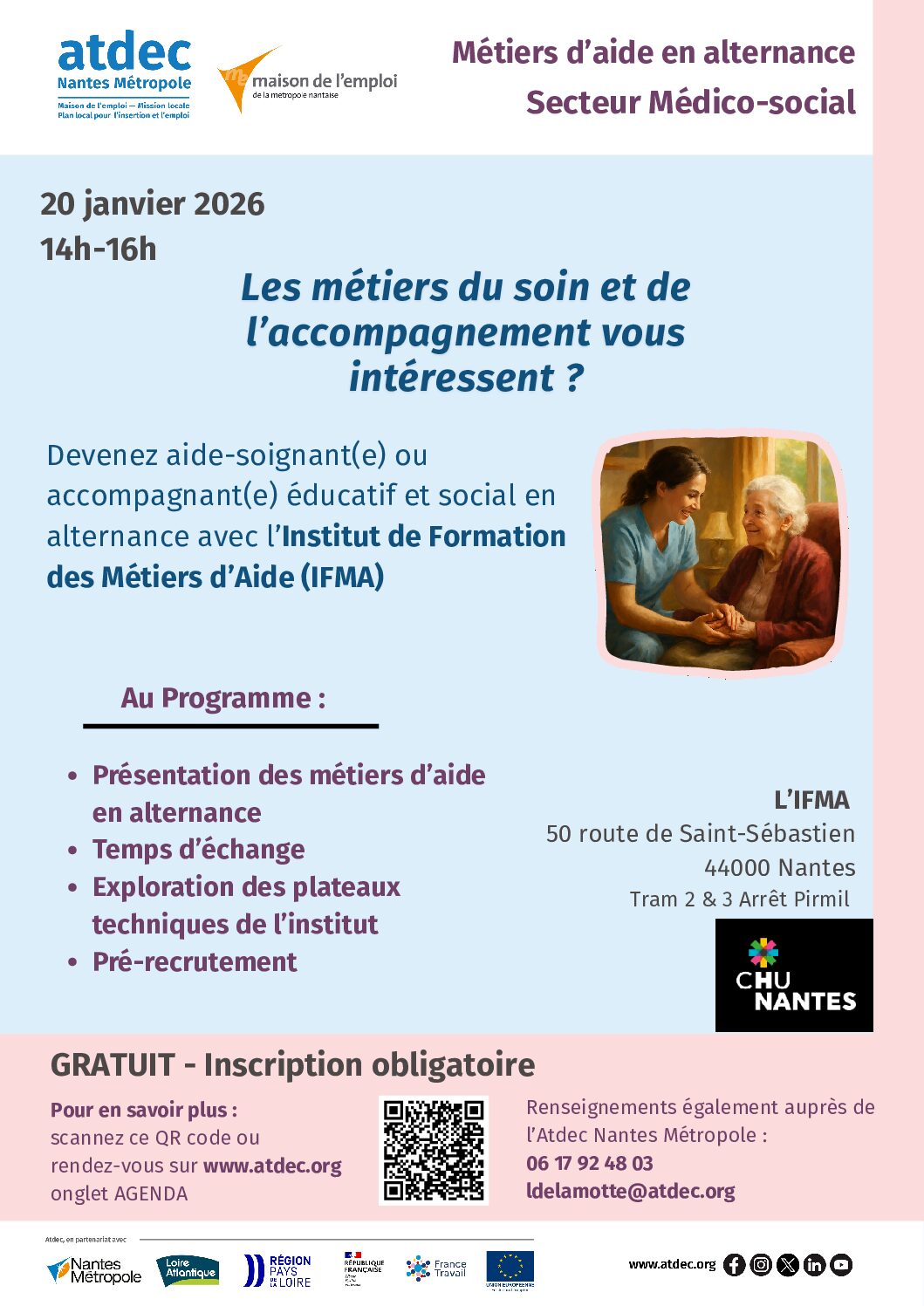 Le Service Emploi Entreprises de l’ATDEC vous propose de visiter l’IFMA (Institut de Formation des Métiers d’Aide) et de participer à un pré-recrutement