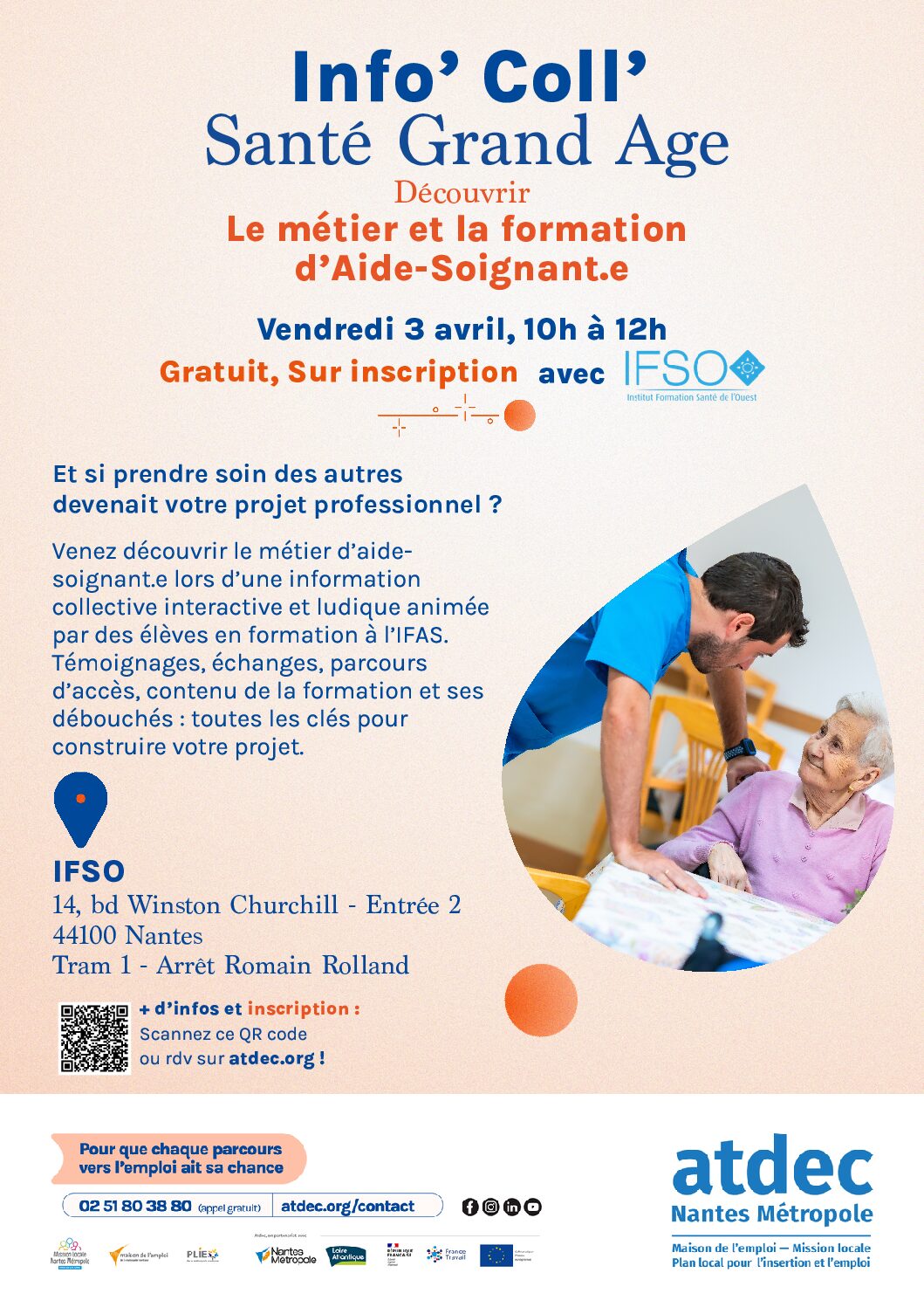 Venez découvrir le métier et la formation d’aide-soignant·e lors d’une session interactive et conviviale animée par des élèves de l’IFSO, dans les locaux de l’institut.