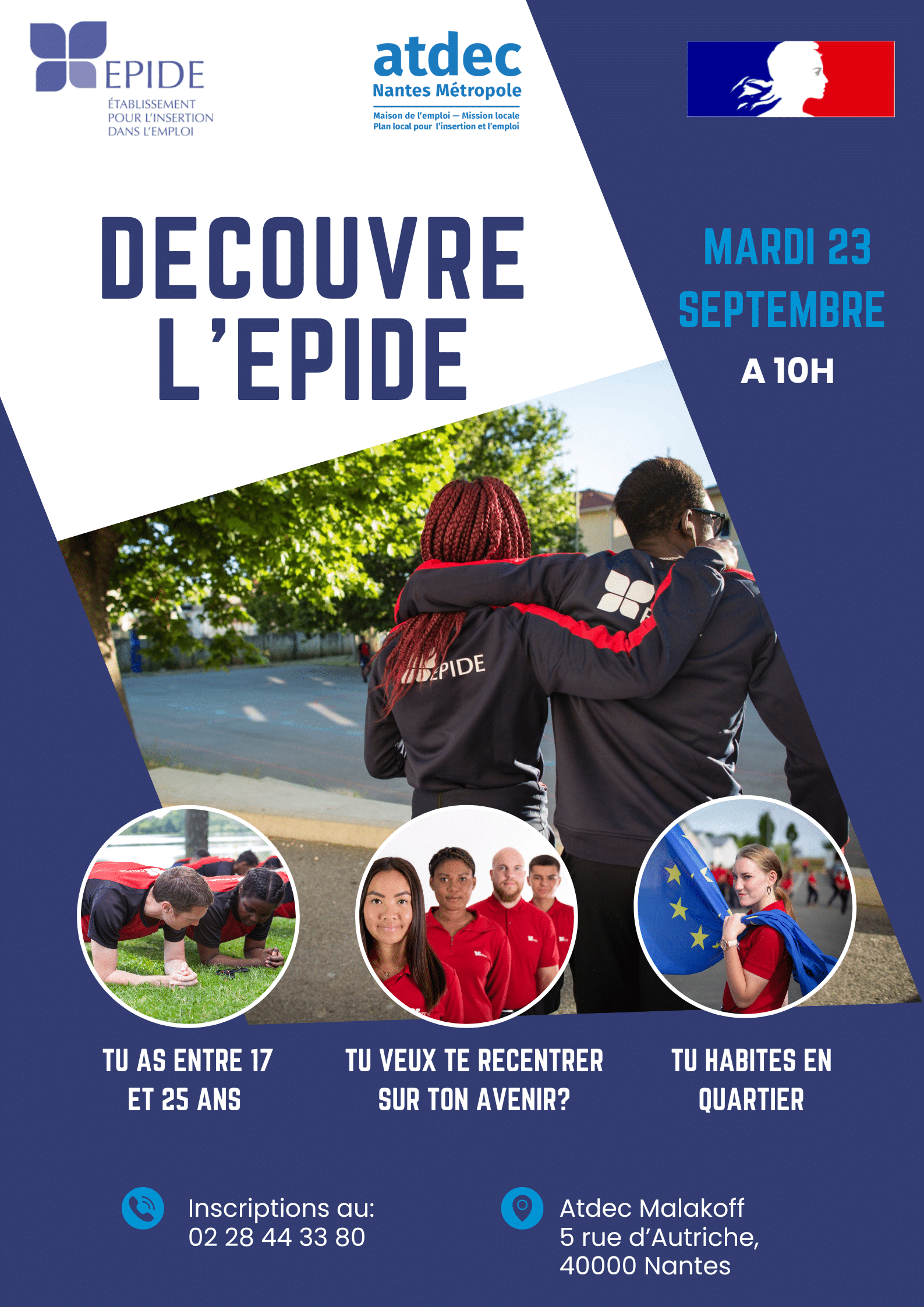 L’EPIDE (Établissement Pour l’Insertion Dans l’Emploi) accompagne des jeunes de 17 à 25 ans dans une dynamique positive d’insertion sociale et professionnelle pour accéder durablement à un emploi et à s’insérer en tant que citoyens engagés.
