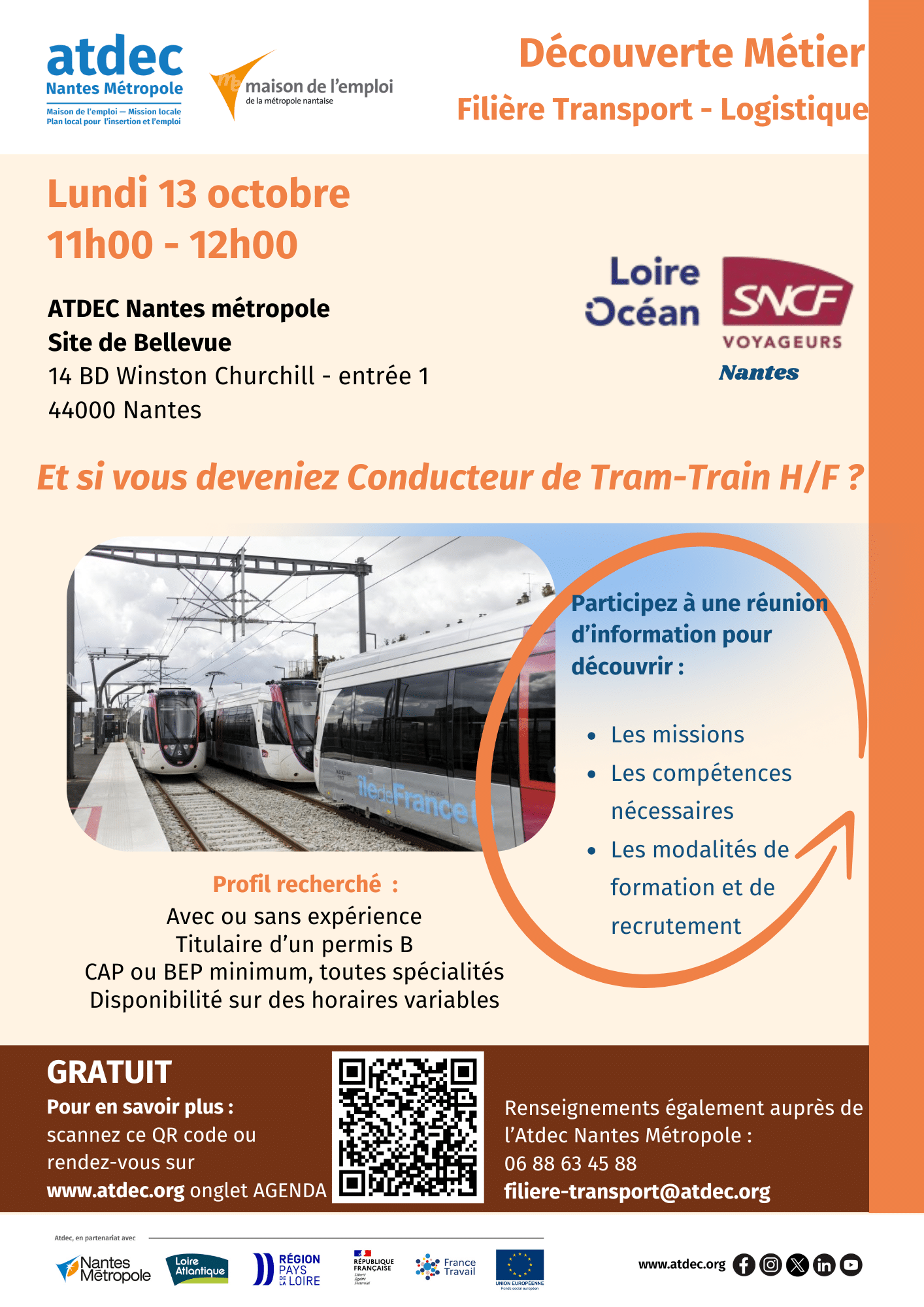 SNCF « LOIRE OCEAN » forme et recrute ses futurs conducteurs – conductrices de Tram-Train. Obtenez toutes les informations en participant à la réunion du 13 octobre prochain !