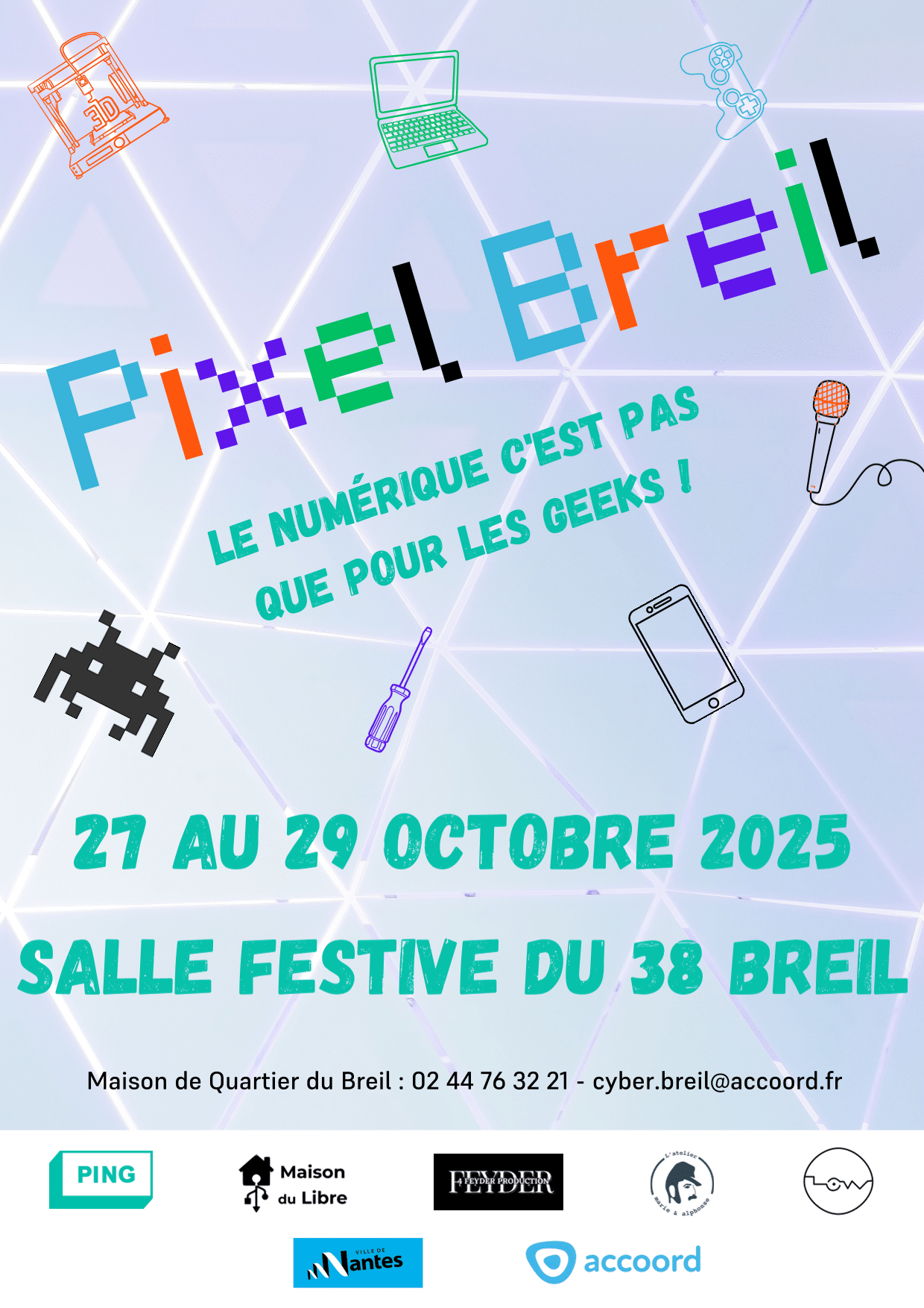Le Mardi 28 Octobre, retrouvons nous à la Salle Festive du 38 Breil pour le Festival PIXEL BREIL : doublage de film, flocage de vêtements, jeux vidéos ou encore mixage audio dans un vrai studio de musique.