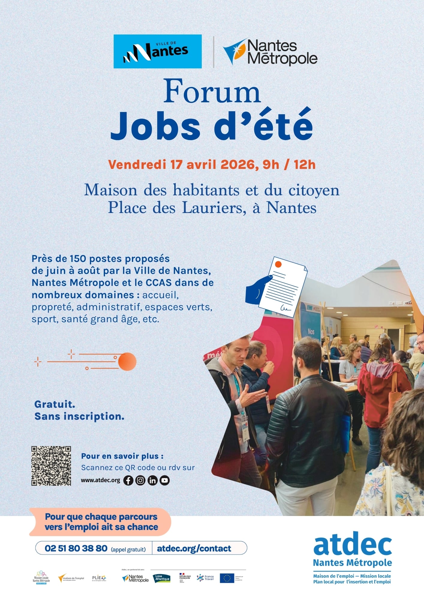 Forum Jobs d’été 2026 de la Ville de Nantes et de Nantes Métropole, organisé en partenariat avec l’Atdec.