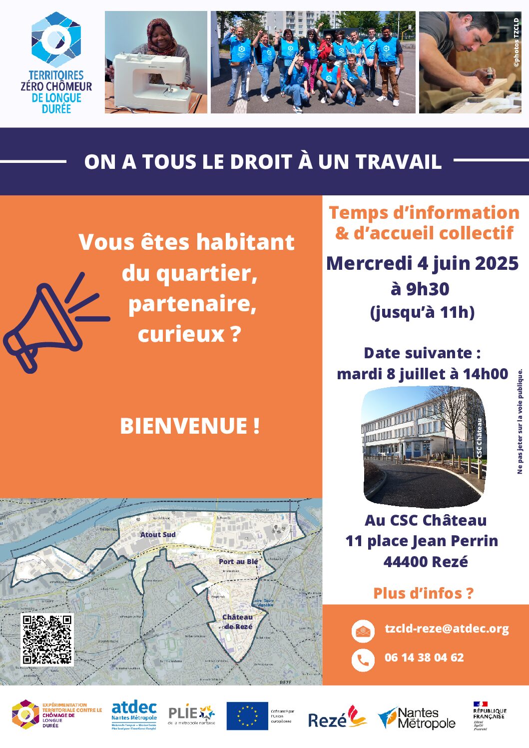 Vous habitez Rezé ? Vous souhaitez des informations sur le droit à l’emploi ? Venez découvrir le projet Territoire Zéro Chômeur de Longue Durée à Rezé !