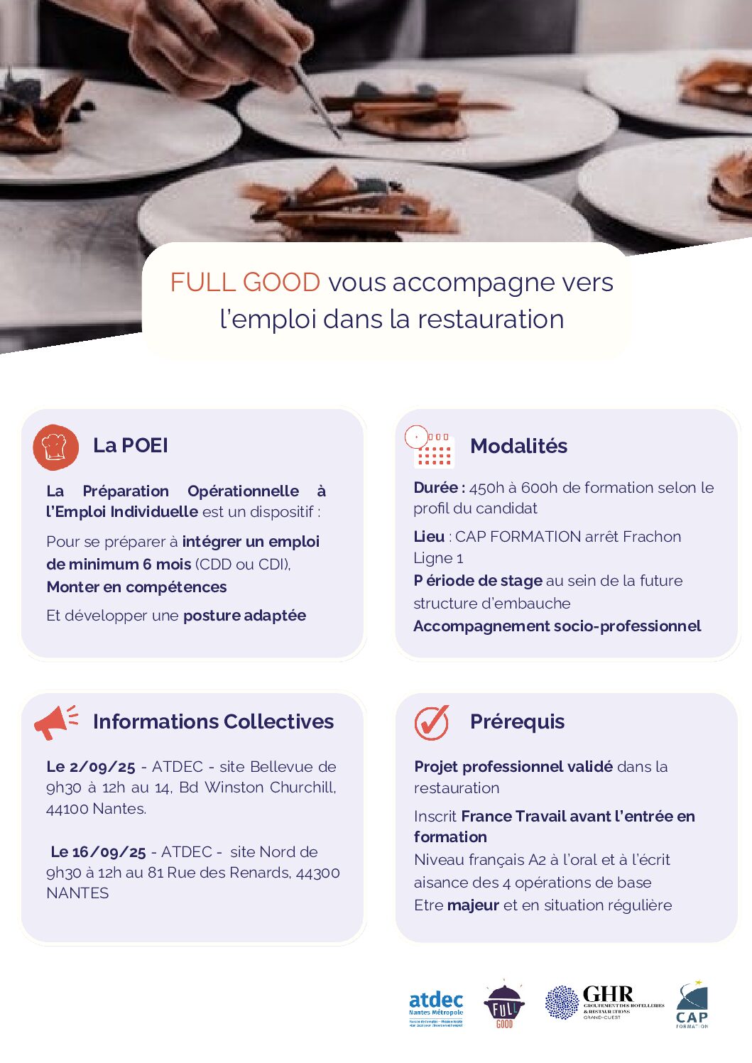 L’association Full Good, en partenariat avec le GHR (syndicat professionnel de l’Hôtellerie et de la Restauration), propose une nouvelle édition du dispositif INCLUSION Café Hôtellerie Restauration.