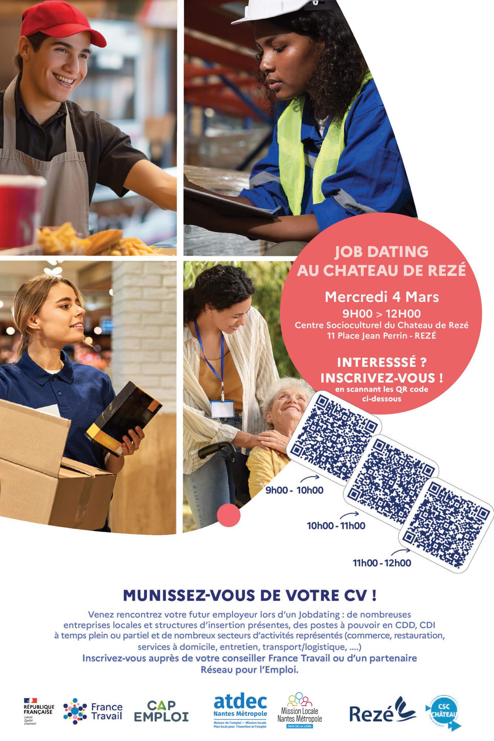 Job dating du Château de Rezé qui a lieu le 4 mars de 9h à 12h au CSC Château !