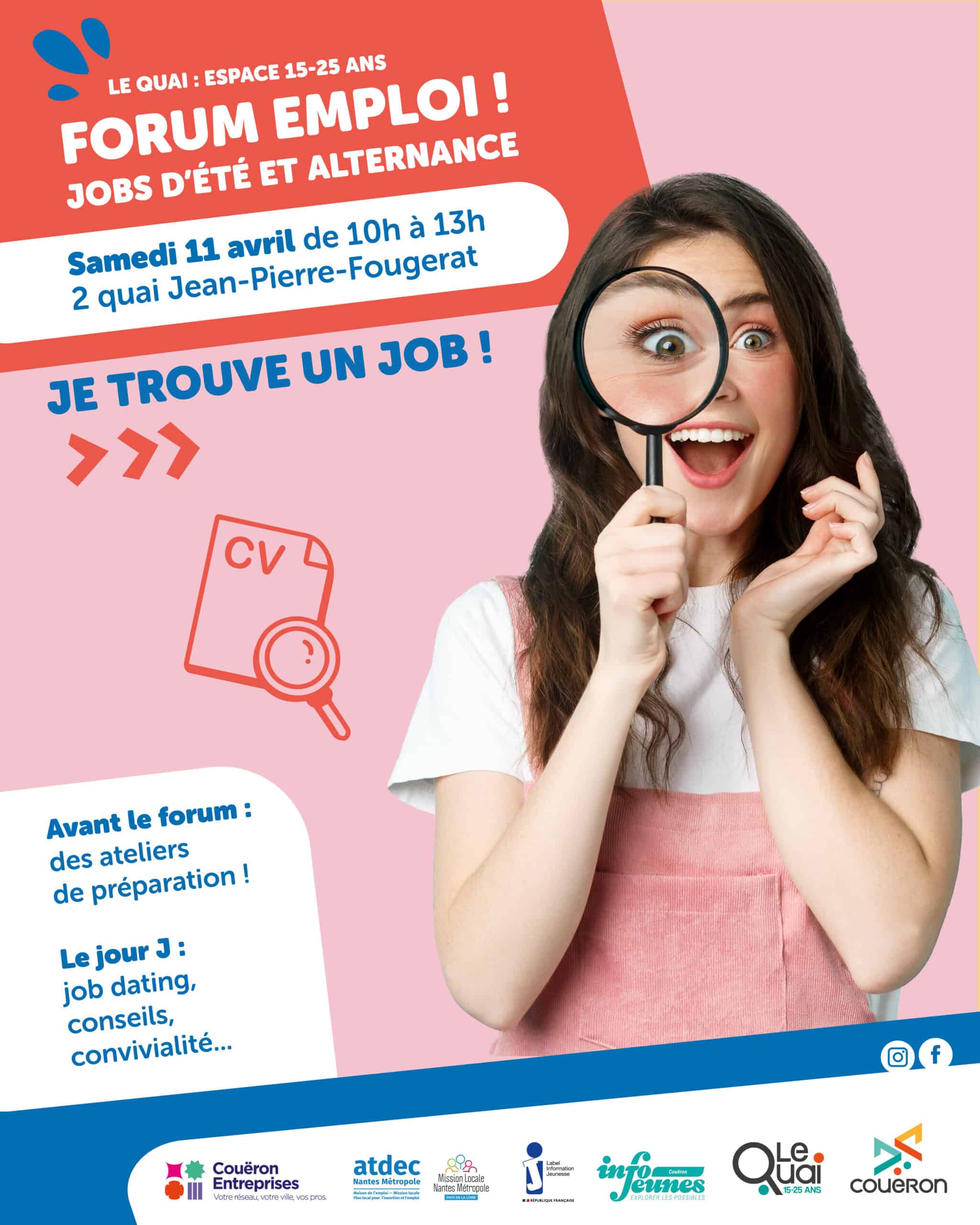 Rendez-vous au Quai samedi 11 Avril pour le forum Emploi : jobs d’été et alternance.