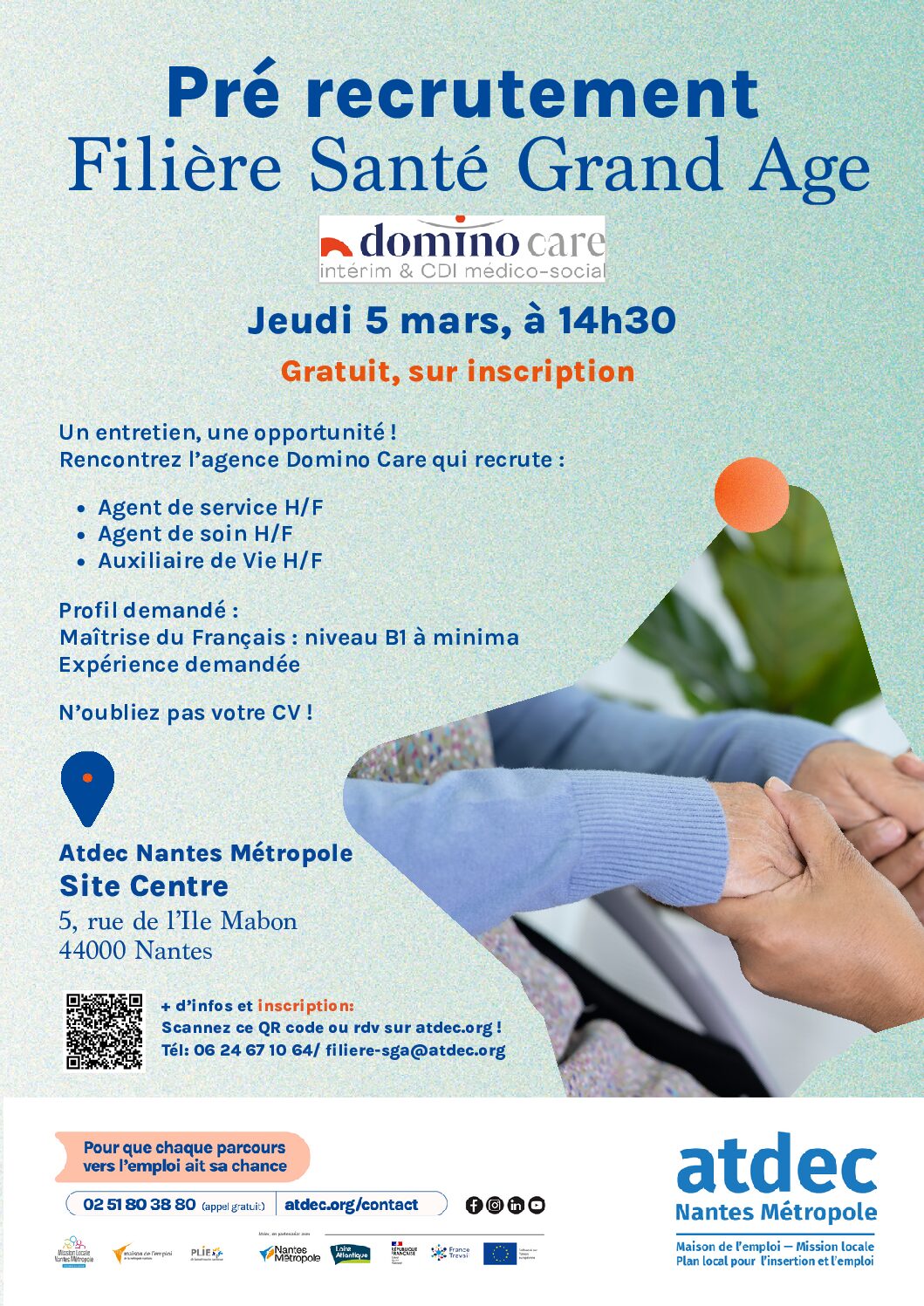 👉 Domino Care, agence d’intérim spécialisée, vous accueille pour un premier échange dans les locaux de l’ATDEC.