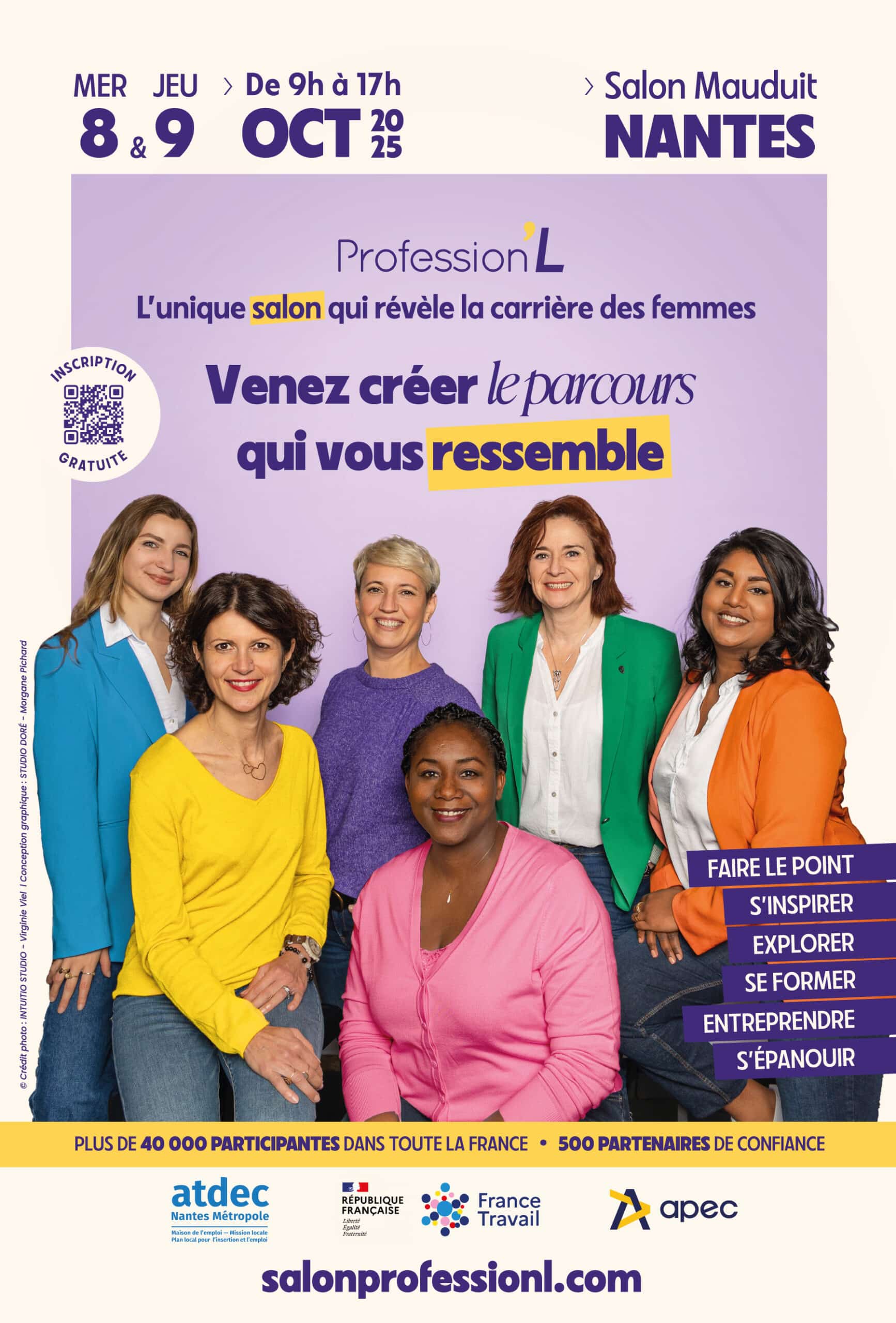 PROFESSION’L s’installe au Salon Mauduit, les 8 et 9 octobre 2025. Pendant deux jours, plus de 60 partenaires de l’écosystème nantais se mobilisent pour offrir aux femmes un espace unique de rencontres, d’inspiration et d’accompagnement, gratuit et accessible à toutes.
