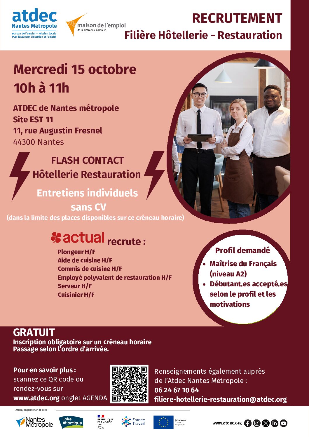 *un autre créneau est possible à 11h en cliquant sur ce lien RECRUTEMENT – FLASH CONTACT HOTELLERIE ET RESTAURATION – Atdec Nantes Métropole