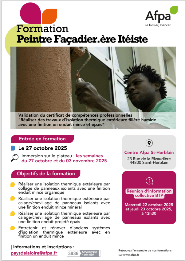 Recrutement sur la formation « peintre/façadier ITE » en partenariat avec l’AFPA
