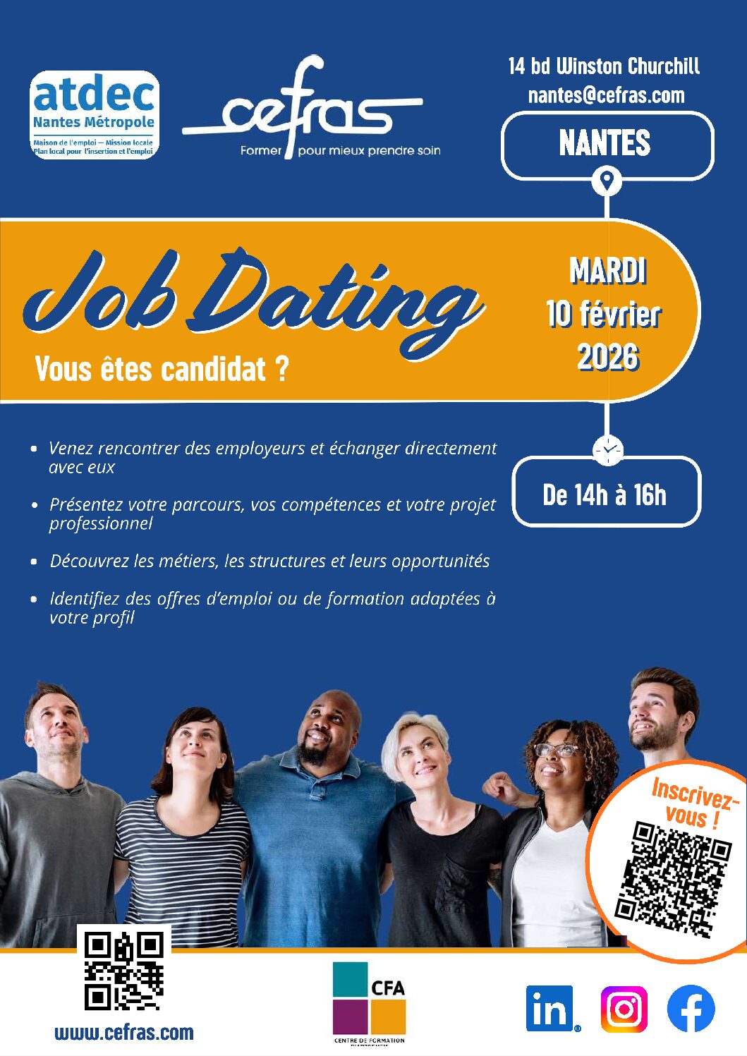 Rejoignez-nous le mardi 10 février, de 14h à 16h, au CEFRAS pour un Job Dating!