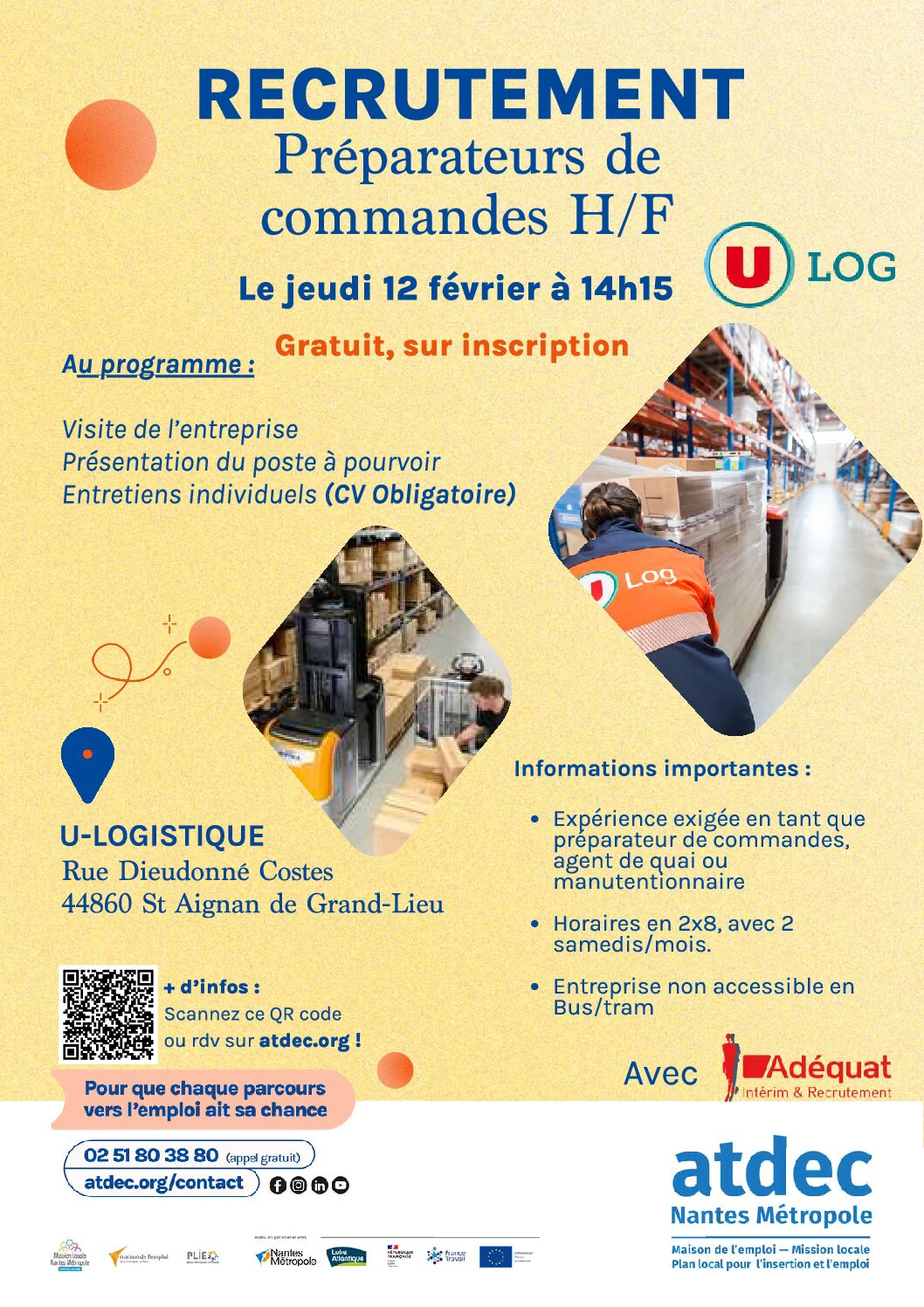 En partenariat avec Adequat Recrutement, venez vous informer sur le poste et postulez ! (Visite de l’entreprise prévue)